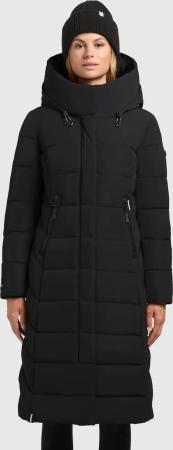 Damen Mantel lange warme Steppjacke mit abnehmbarer Kapuze und magnetischer Abdeckleiste Haya Matt-YM Black Gr. XL