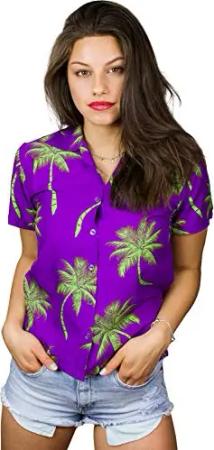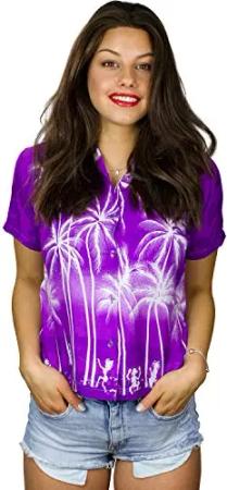 Funky Hawaii-Bluse-Hemd, Damen, Kurzarm, JK-Beach, Negativ-Violett, XS