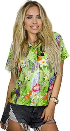 Funky Hawaii-Bluse-Hemd, Damen, Kurzarm, Parrot-Cockatoo, Hell-Grün, XXL