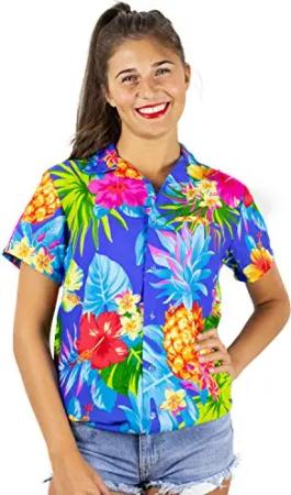 Funky-Hawaii-Bluse-Hemd, Damen, Kurzarm, Pineapple, Blau, L