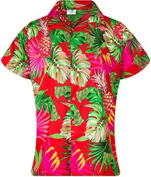 Funky Hawaii-Bluse-Hemd, Damen, Kurzarm, Pineapple-Leaves, Rot, XXL