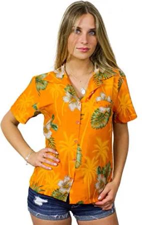 Funky Hawaii-Bluse-Hemd, Damen, Kurzarm, Pineapple-Flowers, Orange, XL