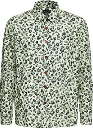 Herren Langarm Hemd Allover Print Strandmode Sommerhemd Retro Vintage