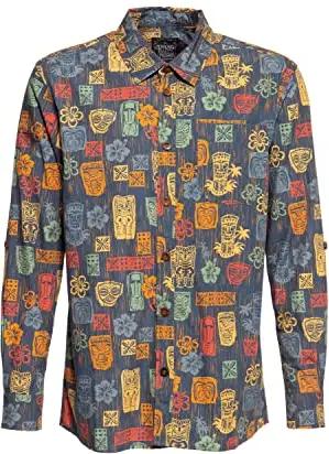 Herren Langarm Hemd Hawaii Hemd Tahiti Hawaii Allover Print Tiki Stil Vintage Retro Bio-Baumwolle Organic Cotton Tahiti