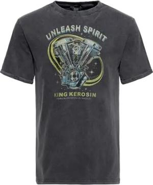 Herren Print Shirt T-Shirt Kurzarmshirt Rundhals Used Dick 200 G/m² V-Twin Motor Vintage Retro Waschung Unleash Spirit
