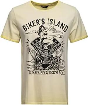 Herren Roll-Up T-Shirt Slim Straight Fit Prints Oilwash Reine Baumwolle Bikers Island