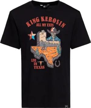 Herren T-Shirt · Printshirt · Retro · Vintage · Western · Print · Logodruck · Kurzarm · Rundhals ·Texas · Rockabilly · 50s · All My Exes Live In Texas