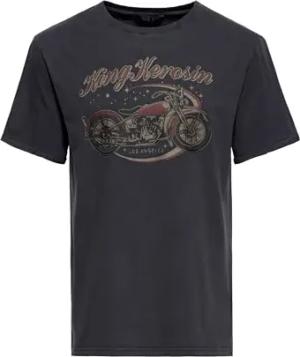 Herren T-Shirt Fotoprint Frontprint Classic Shirt Casual Motorcycle Rundhalsausschnitt Man In Black
