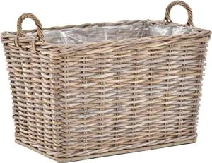 Stabiler Pflanzkorb Dekokorb Flechtkorb mit Griffen Holzkorb Natur-Rattan (Natur Grau mit Folie)