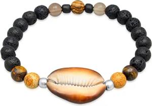 Buddha Herren Naturstein Armband elastisch aus Lava- und Tigerauge Perlen (8 mm) mit oxidierten 925 Sterling Silber Elementen und einer Kauri Muschel Surferarmband Länge 21 cm