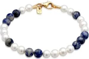 Buddha Herren Silber Armband (2mm) Panzerarmband 925 Sterling Silber 24K vergoldet mit Silberperlen und Glas Kristalle Länge 18 cm