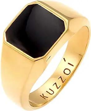 Goldener Siegelring Herrenring Achteck mit Emaille Schwarz in 925 Sterling Silber vergoldet, 10 mm breit, Herren Goldring, Gold Ring für Männer poliert in der Ringgröße 58, 0610512720_58