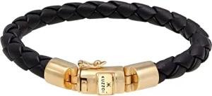 Herren Lederarmband in Echtleder schwarz geflochten, Armband für den Mann mit massivem Kastenverschluss aus vergoldetem 925 Sterling Silber, Länge 19 cm