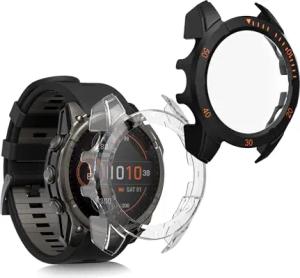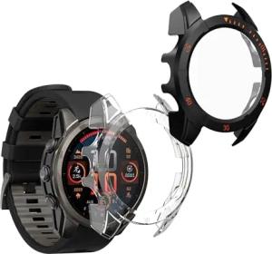 2X Cover kompatibel mit Garmin Fenix 8 47mm Hülle - Fullbody Fitnesstracker Case Set aus Glas - Transparent Schwarz