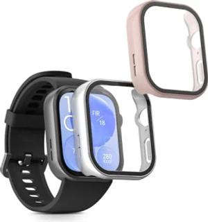2X Cover kompatibel mit Huawei Watch Fit 3 Hülle - Fullbody Fitnesstracker Case Set aus Glas - Silber Altrosa