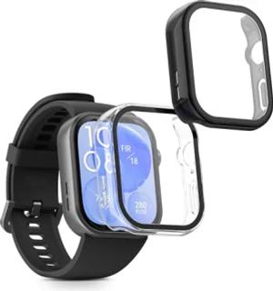2X Cover kompatibel mit Huawei Watch Fit 3 Hülle - Fullbody Fitnesstracker Case Set aus Glas - Transparent Schwarz