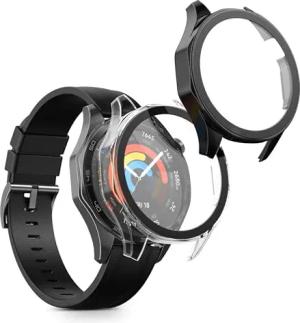 2X Cover kompatibel mit Huawei Watch GT5 46mm Hülle - Fullbody Fitnesstracker Case Set aus Glas - Transparent Schwarz