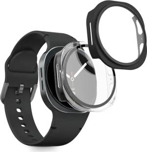 2X Cover kompatibel mit Samsung Galaxy Watch 8 (44mm) Hülle - Fullbody Fitnesstracker Case Set aus Glas - Transparent Schwarz