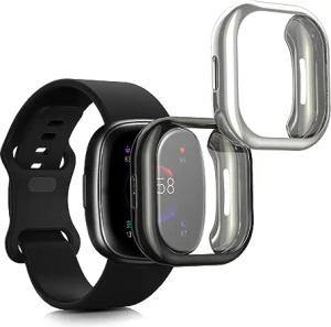 2X Schutzhülle kompatibel mit Fitbit Versa 4 / Sense 2 Hülle - Fullbody Cover Set aus Silikon - Schwarz Silber