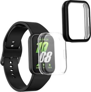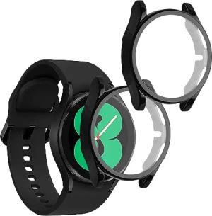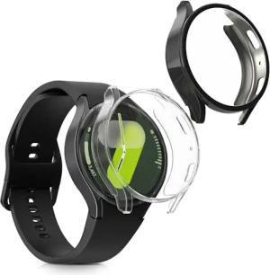 2X Rundum Cover kompatibel mit Samsung Galaxy Watch 6 44mm Hülle - Fullbody Fitnesstracker Privatsphäre Case - Set aus Glas - Transparent Schwarz