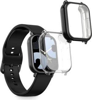 2X Schutzhülle kompatibel mit Xiaomi Redmi Watch 5 Lite Hülle - Fullbody Cover Set aus Silikon - Transparent Schwarz