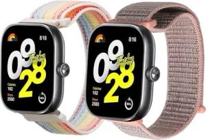 2X Sportarmband kompatibel mit Xiaomi Redmi Watch 4 / Band 8 Pro/Band 9 Pro Armband - Sport Ersatzarmband Set aus Nylon für Fitnesstracker - Altrosa Mehrfarbig