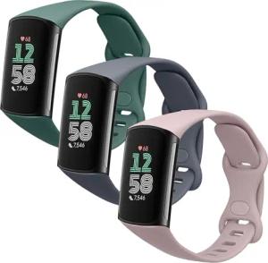 3X Sportarmband kompatibel mit Fitbit Charge 6 / Charge 5 Armband - Fitnesstracker Band Set aus TPU Silikon