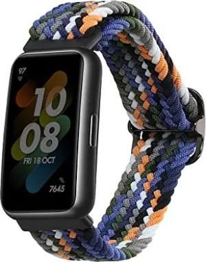 Armband kompatibel mit Huawei Band 7 - Nylon Fitnesstracker Sportarmband Band in Dunkelblau Gelb Grau - Innenmaße von 15-18,5 cm