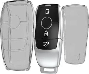 Autoschlüssel Hülle kompatibel mit Mercedes Benz Smart Key Autoschlüssel (nur Keyless) - Schlüsselhülle Silikon Cover - Schwarz Transparent