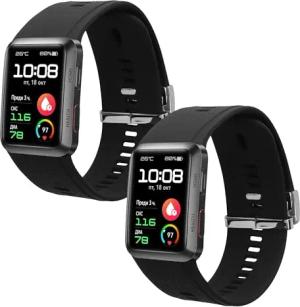 2X Cover kompatibel mit iTOUCH Air 3 Hülle - Fullbody Fitnesstracker Case Set aus Glas - Transparent Schwarz