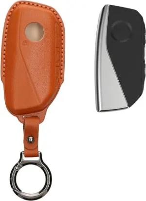 Premium Leder Autoschlüssel Schutzhülle kompatibel mit BMW 4-Tasten X7 X1 U11 iX ix1 7er G07 I7 Autoschlüssel Hülle - Schlüssel Tasche - Braun