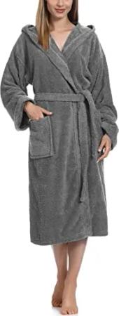 Damen Frottee Bademantel aus 100% Baumwolle LA40-193 (Dunkelgrau-12 (Gramatur 400), M)