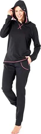 Damen Schlafanzug Zweiteiler Langarm Tierkostüm bunt Tiermotiv Verkleidung mit Kapuze LA40-238 (Schwarz Pavian, XXL)