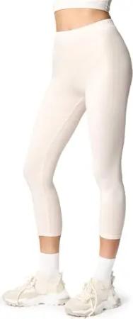 Leggings Damen 3/4 Baumwolle bequem und atmungsaktiv Capri Leggings Damen für Sommer LA40-132 (Ecru, XL)