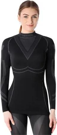 Thermounterwäsche Damen Funktionsunterwäsche Langarm Shirt Thermoaktiv LAGI004 (Schwarz/Graphite, M)