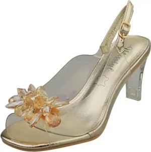 Damen Sandalette transparent und mit Perlen besetzt Marlen_02, Größe:37 EU, Farbe:Gold