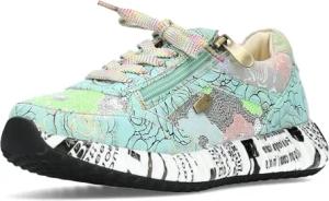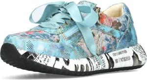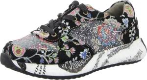 Damen Sneaker Leder Blumenmuster Schrift Reißverschluss Burton 1123, Größe:37 EU, Farbe:Mehrfarbig