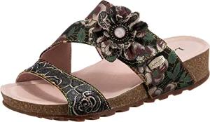 Damen Pantolette Leder mit floralem Muster und Keilabsatz Bonito 22, Größe:37 EU, Farbe:Türkis