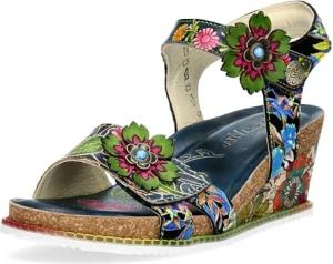 Damen Sandalette Leder mit Blumenmuster und Keilabsatz Barry 36, Größe:40 EU, Farbe:Grau