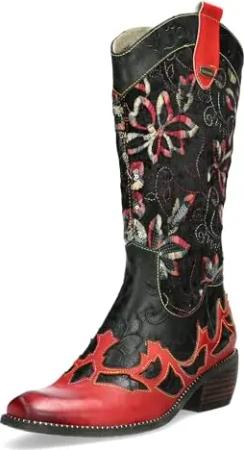 Damen Stiefel Western Cowboy Boot mit Blumenmuster Ercwinao 19, Größe:37 EU, Farbe:Rot