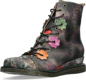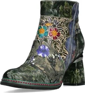 Damen Stiefelette mehrfarbig mit floralem Muster Kinoao 20, Größe:37 EU, Farbe:Grün