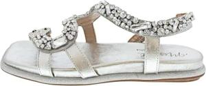 Damen Sandalette mit Strasssteine und Reißverschluss flach MAXINE-01, Größe:40 EU, Farbe:Silber