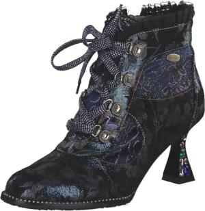 Damen Stiefelette Blumen Rüschen Knöpfe florales Design Alcbaneo 130, Größe:39 EU, Farbe:Mehrfarbig