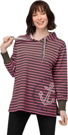 Hoodie, Ringel Sweater, Anker Print, Langarm lodengrün L 819571190-L