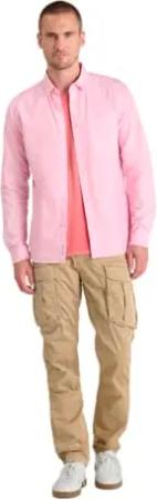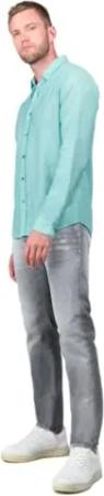 Hemd aus Leinen und Baumwolle, normale Passform, türkis, L