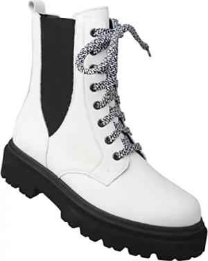 Bequeme Damenstiefel Frizzi aus weichem Leder mit Wechselfußbett, Weite H, Hallux Valgus geeignet, Kleiner Blockabsatz, schicke Winterstiefel, warme Lederstiefel mit Absatz 39 weiß