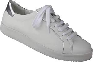 Damenhalbschuhe Nena aus echtem Leder, Weiss in Weite H, Hallux geeignet, Freizeitschuhe, Allround Sneaker, sportliche Schnürschuhe, Schuhe für Sport modisch elegant 36 weiß-Silber