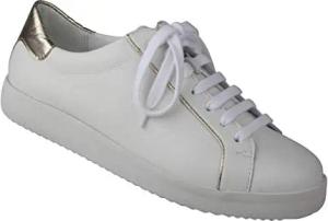 Damenhalbschuhe Nena aus echtem Leder, Weiss in Weite H, Hallux geeignet, Freizeitschuhe, Allround Sneaker, sportliche Schnürschuhe, Schuhe für Sport modisch elegant 36 weiß-Gold