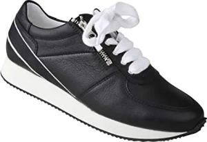 Damen Sneaker Fiona in den Farben schwarz und Weiss aus echtem Leder mit Lammfellfutter in Weite H, geeignet bei Hallux Valgus, Lammfellfußbett, Freizeitschuhe, Turnschuhe 44 schwarz
