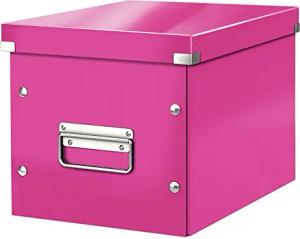 Click & Store Aufbewahrungsbox mit Deckel Mittel-Groß, Würfelbox für Regale im Wohnzimmer oder Büro, Transportbox aus 80 % recycelter Premium-Hartpappe, Stabile Metallgriffe, Pink, 61090023